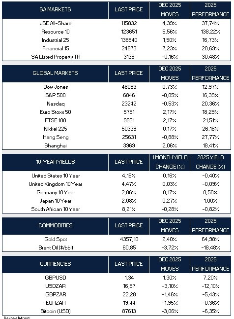South Africa outperforms as resources rally and confidence improves: South African assets delivered standout returns in 2025, supported by a powerful resource rebound, a stronger rand and easing inflation and bond yields.